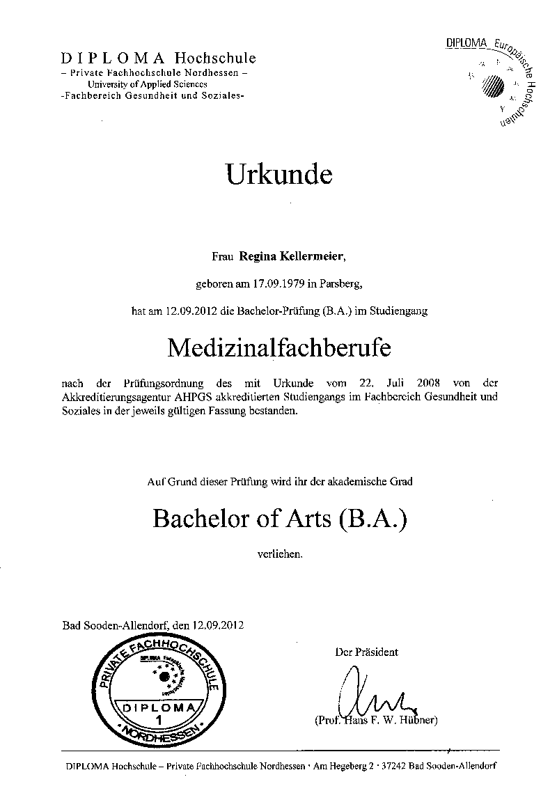 September 2012Abschluss Bachelor-Studium für Medizinalfachberufe