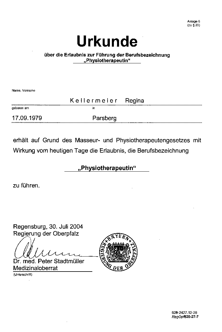 April 2017Sektoraler Heilpraktiker für Physiotherapie